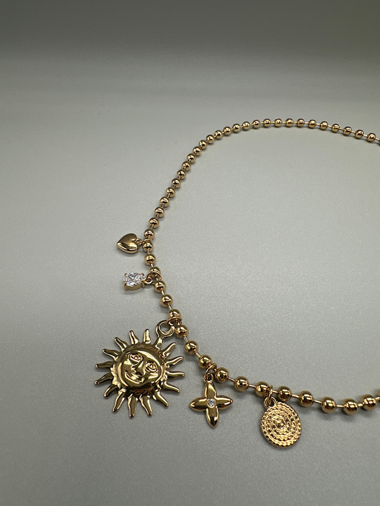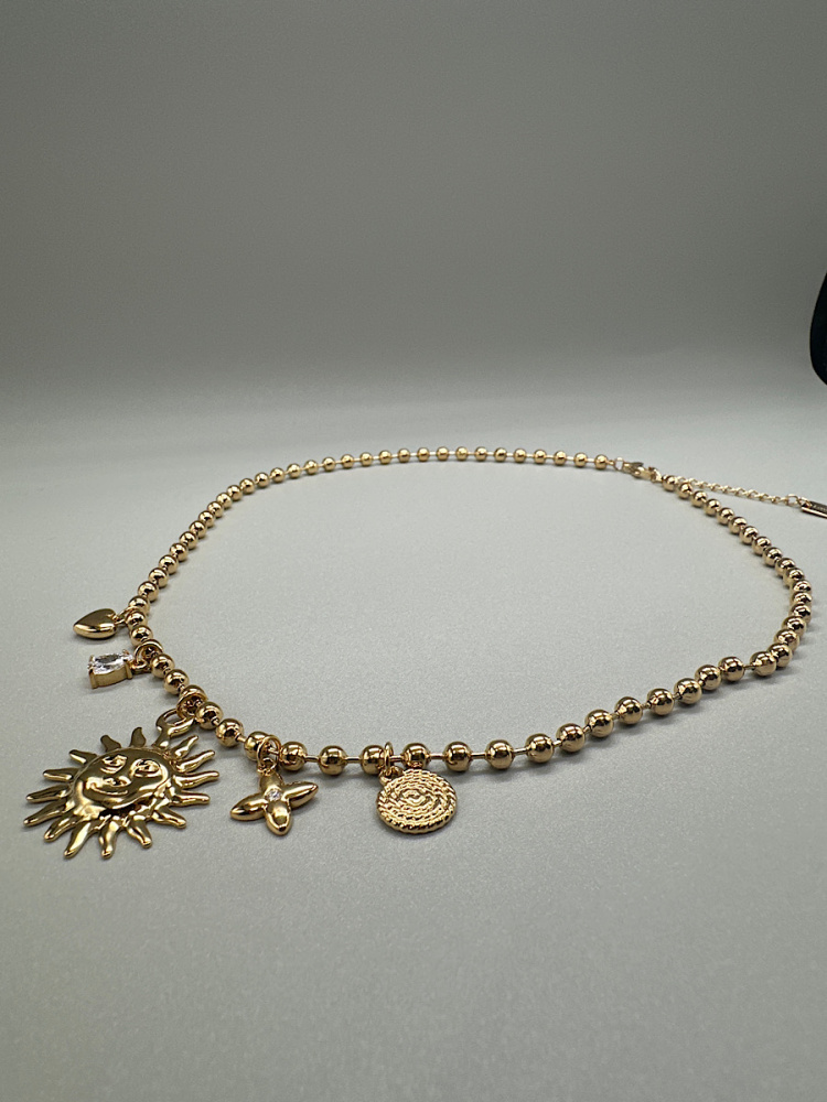 - Détails : Collier à chaine large avec breloques esprit Santorini