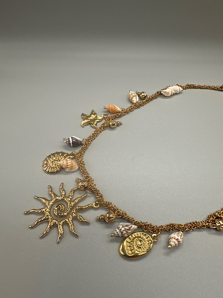 - Détails : Long collier à motifs fleurs ornées de strass